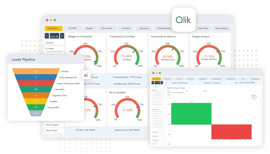Embrace the only ERP software for real estate with Qlik’s advanced real-time Business Intelligence solution. Harness upon deep actionable insights to identify areas of improvement, and fix them with our tool.
